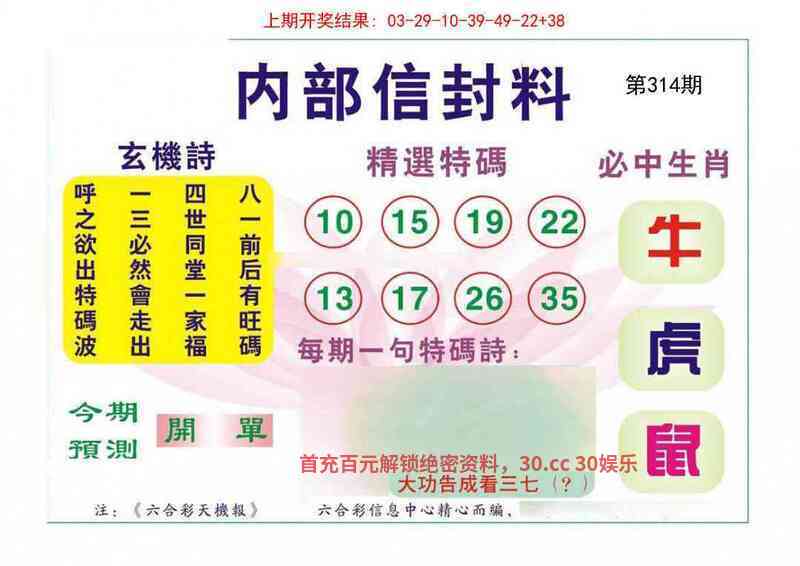 | 314期 | 虎 | 7尾 | 0头 | 羊23 |